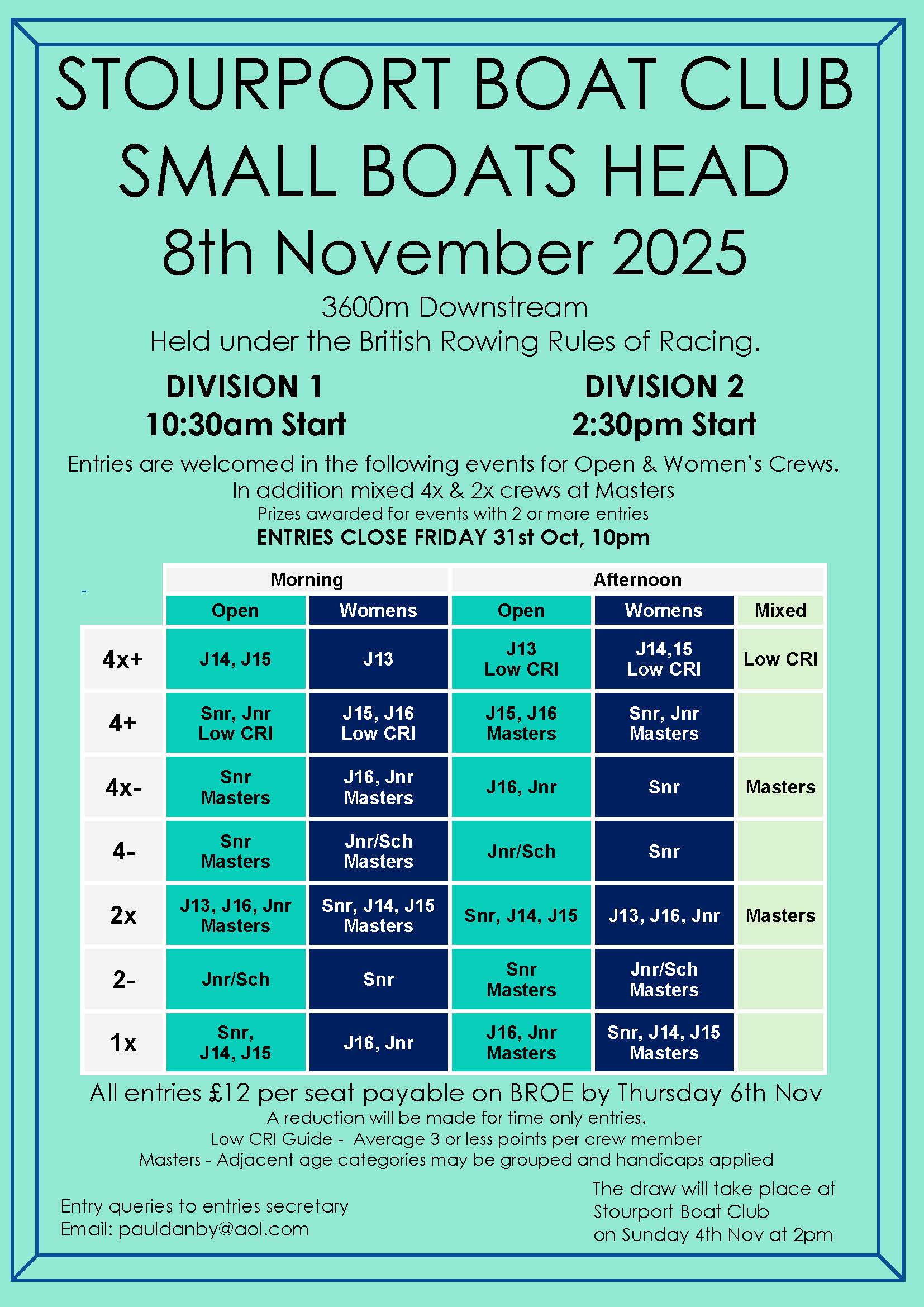 Our Small Boats Head takes place on the second Saturday in November. 2025 date: Saturday 8th November